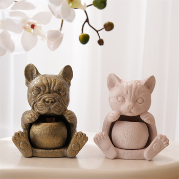 Französische Bulldogge Welpe Hohl kerzenhalter Silikon form Beton putz Kerzenhalter Form Harz Katze Soja Wachs halter Kerzen glas